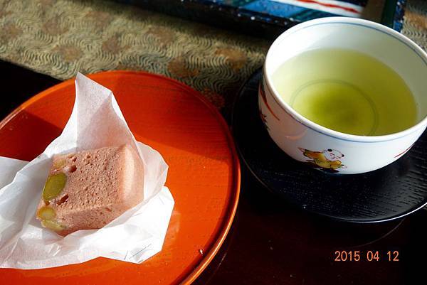 溫泉旅館的慣例就是泡溫泉之前一定要吃個小點心,避免血糖太低。加賀地區只要講究一點的旅館,一定會使用著名的九谷燒的餐具。