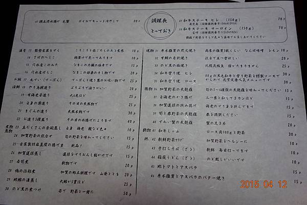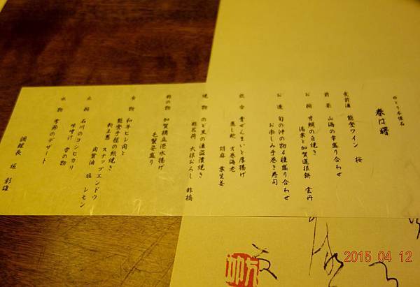 再來,創意的懷石料理點菜方式是非常有特色的,一般吃溫泉旅館的晚餐幾乎都是撐到受不了,份量太多,或是有些菜色不是自己很喜歡的,我寧願吃份量少,但卻精緻高檔。花紫就滿足了我這需求,他提供了五十個菜色的菜單,共有一百點(一點一百塊)讓你自由搭配選擇。