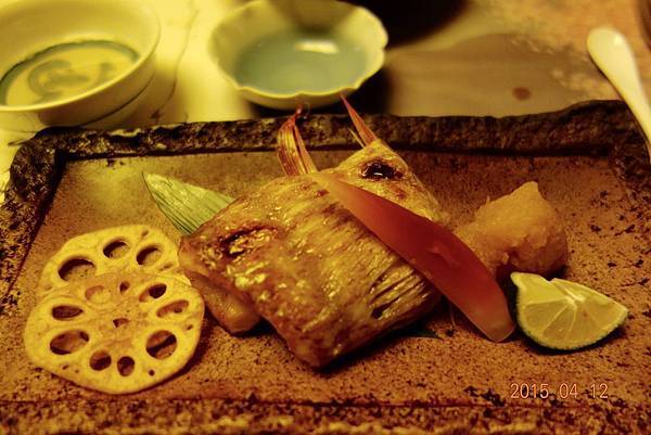 烤黑喉,肉質相當細緻,烤得剛剛好,好吃!明天到金澤近江町市場就可以知道這魚名稱的由來。