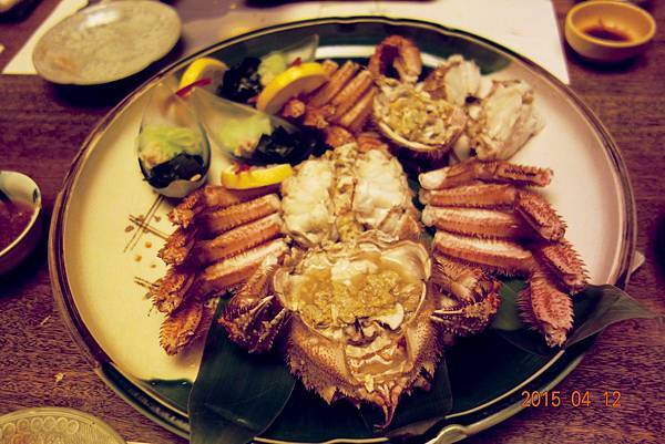 加碼的金額大概就是花在這毛蟹身上了!北陸最有名的螃蟹其實是越前蟹,是日本最高檔的螃蟹,產期為11月至隔年3月,錯過就沒了。這段時間,福井與石川縣一帶的飯店均會推出越前蟹大餐,好一點的旅館大概一個人要花費五萬塊,希望這輩子有機會來試試!