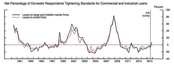 這指標一季公布一次,所以下次會在2月初,這次的數據就蠻重要的,因為這應該會是升息後的首次調查,可以更清楚了解美國金融界的想法。這次緊縮的原因在於金融業對未來的經濟前景並不明朗,因為連聯準會都看不清楚而不敢升息了,而部分原因是特定產業狀況變得更差,我想這指的應該是能源業。不過報告也指出緊縮的幅度並不大,緊縮的部份多在風險比較大的借貸。因此,雖然這指標已經大於零軸,2011年也曾發生過一次,但我認為不需要因為一次突破零軸就太緊張,可以再觀察下一次的指標,若連續兩次突破零軸,甚至更緊縮了,那就真的要小心點!