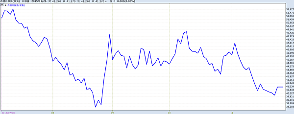 這報告是11/2發佈的,11/4高收益債就從高點往下掉,難道這指標這麼神?若不講清楚,大家會對Jim男更崇拜了!我這人就不喜歡走偶像路線,要不然早就把相片放在部落格上了!其實短期觀察重點反而是在油價上面,因為這次這指標公布後這段時間跟油價下跌剛好重疊,不好判斷誰是兇手,或兩者都是,但看來油價影響成分比較高,因為油價剛好也是從11/4反轉。很不巧今年是暖冬,原油供給大於需求,就看12月初OPEC會議結果,若還是硬不減產,或許也可能跌破前低,那高收益債還有下跌的空間。若減產超乎預期,是可以買進高收益債賺個價差!