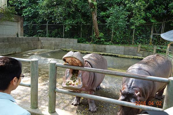 河馬餵食秀,嘴巴超臭的,不要看河馬很老實笨拙的樣子,其實他是很危險的動物!