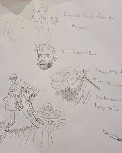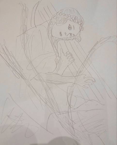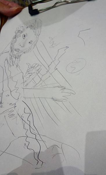 狗蛋追求完美,慢慢的畫,但我們比的是速寫,他完成度最差,且感覺是在畫石膏像,眼睛則變成了青蛙眼。
