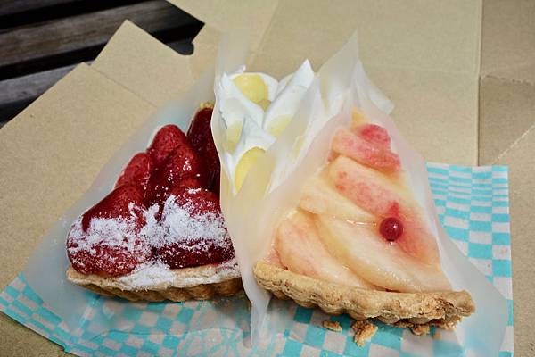 我們選擇水蜜桃,檸檬,草莓口味。吃起來味道如何呢?用的是當地,真材實料的水果下去做的派,一定是好吃的,就湯胖說的,只要選的口味是自己喜歡的,就覺得好吃,當然派皮本身不能失敗,不過我這外行人都是被水果餡料所吸引,沒注意到派皮如何,問我們的甜心點女神Sunny,他說忘記了!那就代表不會太差,要不然一定會被她罵到臭頭,她可也是甜點界的滅絕師太啊(女神跟師太會不會差太多)!