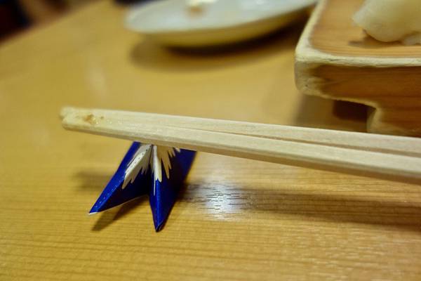 筷子的紙袋還能摺成富士山的筷架,有趣!